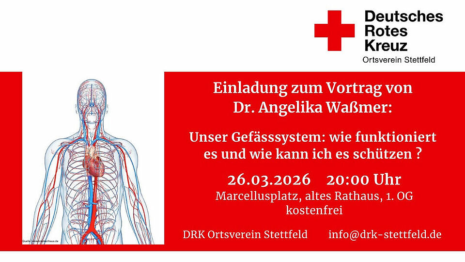 Der Vortrag findet ab 20:00 in den Räumlichkeiten des DRK Stettfeld, Marcellusplatz, 1. OG statt.